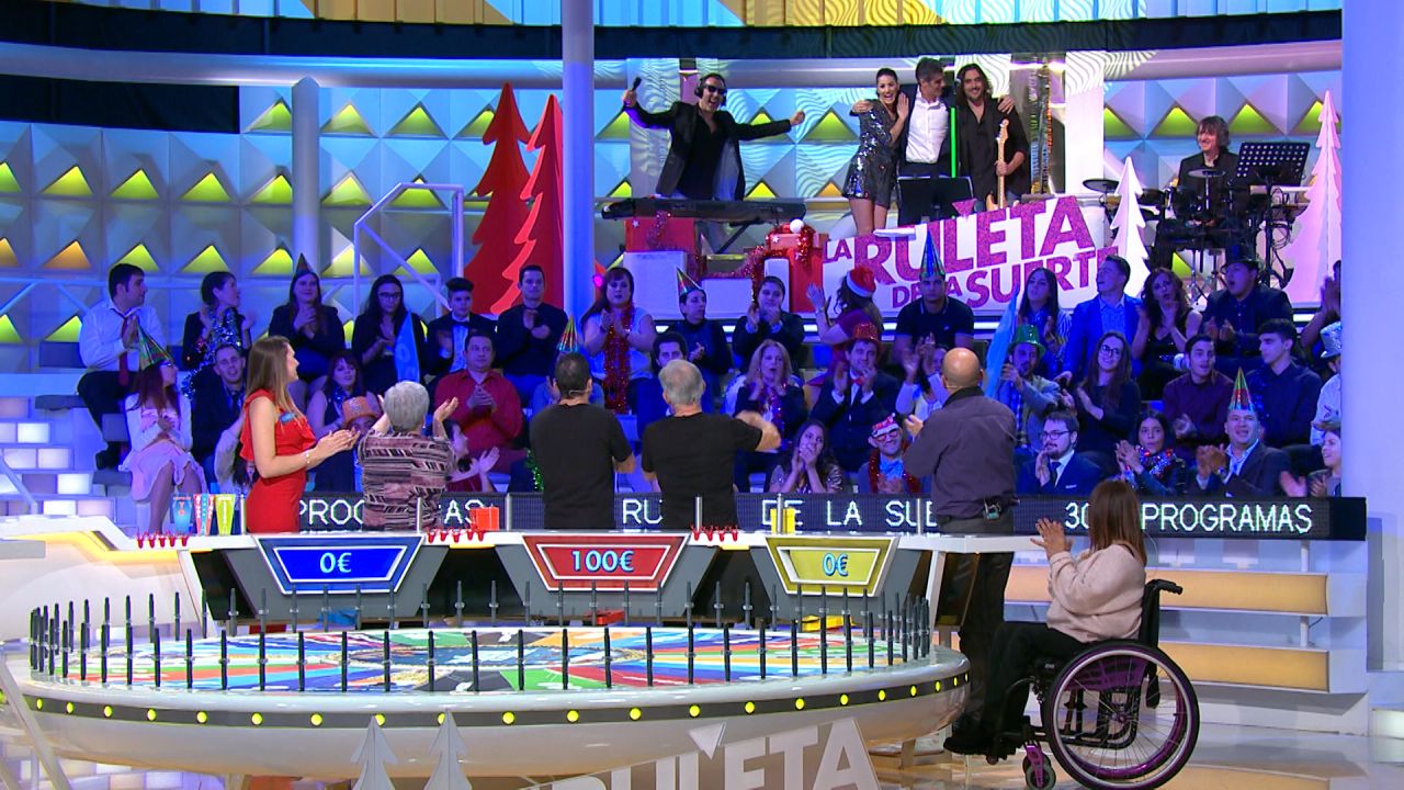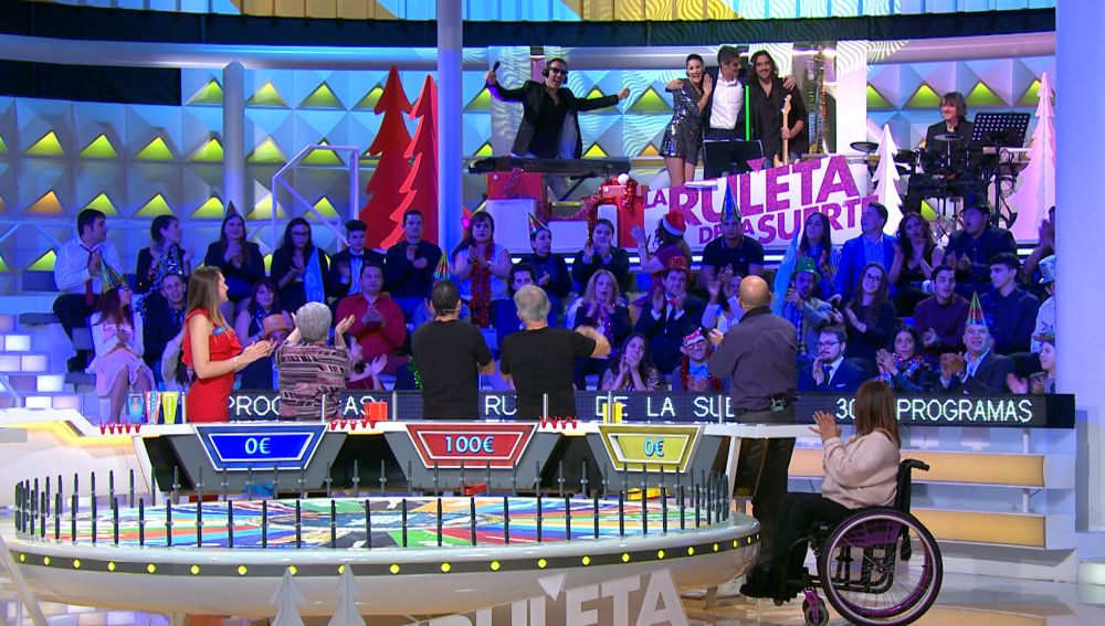 Laura Moure, Jorge Fernández y la banda celebran cantando los 3000 programas de 'La ruleta de la suerte'