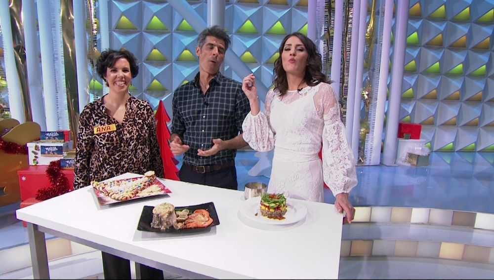 Los concursantes de hoy traen a 'La Ruleta de la Suerte' unos platos que han preparado para la cena de esta noche. ¿Qué es lo mejor, además de la familia, en Nochebuena? Jorge Fernández lo tiene muy claro: ¡La comida!Rosa trae un timbal de aguacate y mango con una decoración muy cuidada, Javier una merluza en salsa de ajo, ¡cómo se nota que se dedica profesionalmente a cocinar!, y Ana nos endulza con un árbol de Navidad elaborado a base de hojaldre y crema de cacao, y sobre todo ¡mucho cariño! Jorge no se ha resistido a probar el postre y parece que luego ha tenido algún problema para hablar...