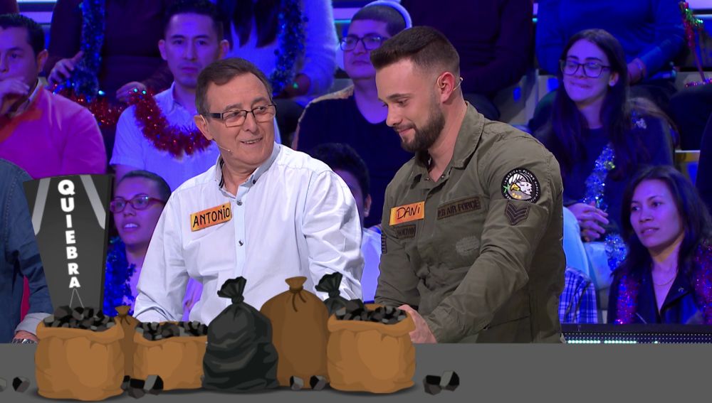 Dani cae en 'quiebra' y al parece a su padre no le hace mucha gracia. Antonio bromea con su hijo en que tiene la cabeza en otro sitio y el plató se convierte en un festival de risas. Jorge Fernández pone orden y les pide que no sean malpensados, el presentador sabe dónde tiene la cabeza Dani ¿En qué estará pensando?