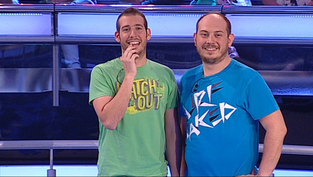 Nacho y Ángel vienen de Guadalajara y son hermanos. Son profesores de Primaria pero ahora mismo están en el paro. Con el dinero que consigan quieren invitar a su familia a una gran comida e ir a Singapur. LLegaron a la octava pregunta con 30.000 euros. Los dos últimos temas fueron antigüedad y cantantes, se decantaron por el último. La pregunta ha sido ¿qué significa en árabe 'Shakira'? Se llevaron el dinero porque contestaron bien, Shakira significa 'agradecida'.
