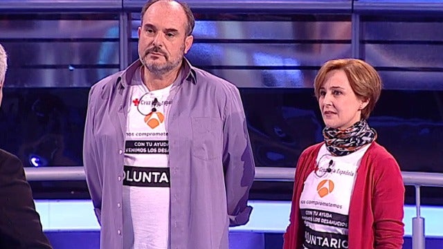 Antonio y Carmen, dos voluntarios de la Cruz Roja, han participado en ‘Atrapa un millón’ con el objetivo de recaudar fondos para la campaña solidaria de Antena 3 y Cruz Roja para prevenir los desahucios. Carmen, además, ha explicado qué tipo de ayuda domiciliaria ofrecen desde su delegación en Madrid.