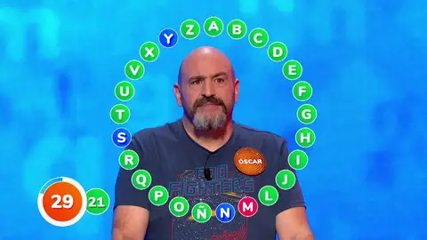 Óscar ha ido siempre ligeramente por delante en el marcador. Su primera vuelta ha sido notable, con 20 aciertos, y parecía lanzado en las preguntas que había dejado pendientes hasta que la M le ha frenado en seco. Ha sido el primer lapsus llamativo, toda una declaración de intenciones de la tarde: el cosmético para regenerar, suavizar y dar brillo al pelo es una “mascarilla” y no una “máscara”, como ha respondido el concursante.