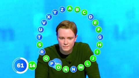 Manu ha comenzado la prueba con 38 segundos de ventaja y, por lo tanto, con la tranquilidad de poder pensar bien cada respuesta. En cambio, Rosa sabía que dudar era como una penalización. Tras unos turnos igualados entre los dos atriles, la coruñesa ha acelerado para completar la primera vuelta con 21 aciertos. ¡Y sólo le quedaban 3 segundos!