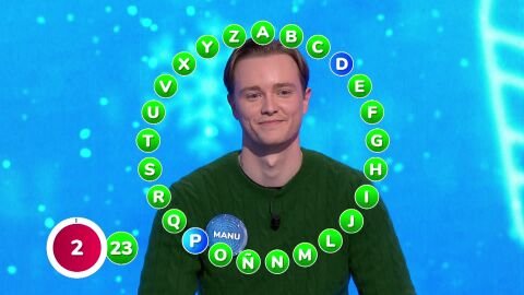 En esta ocasión, Manu se ha quedado en 23 aciertos, aunque todo el plató ha contenido la respiración con una jugada final en la que parecía lanzado al premio de 2.554.000 euros. Ha sido el desenlace de una prueba que ha dominado de principio a fin, con una primera vuelta brillante de 20 letras en verde y con un mejor turno de seis respuestas y otros dos de cinco.