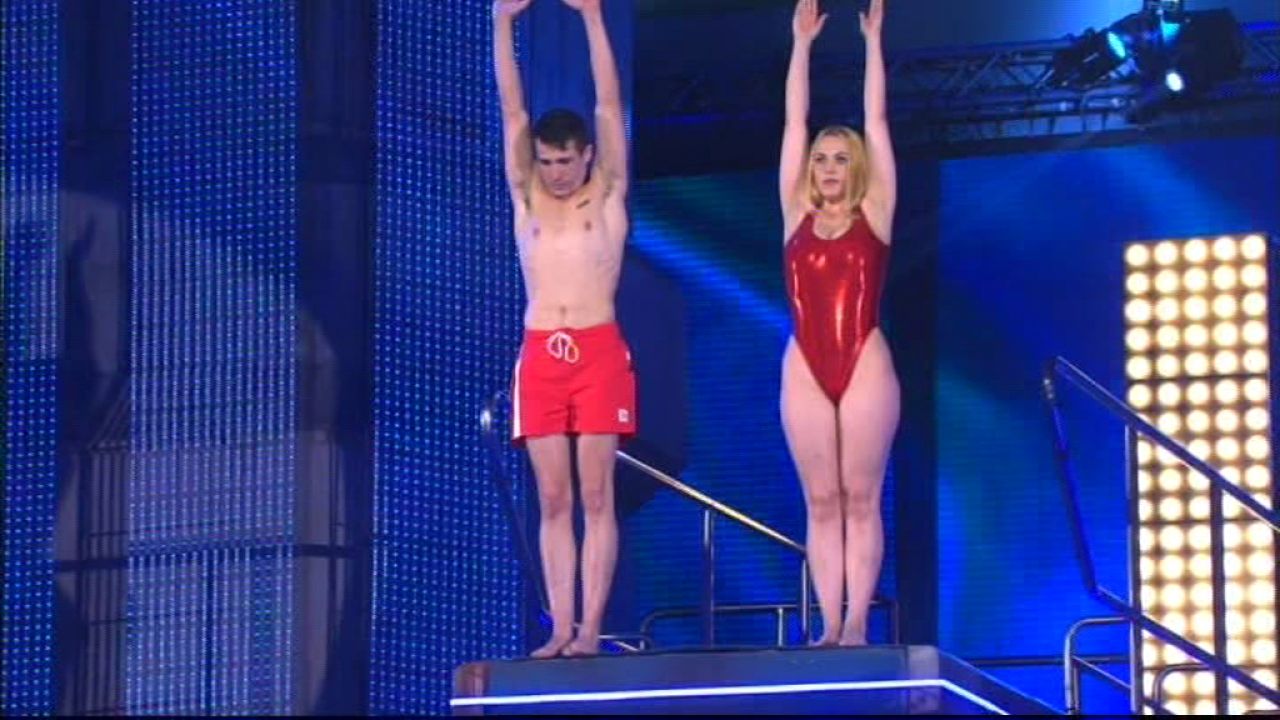 PROGRAMA 7 I SPLASH! FAMOSOS AL AGUA Daniela Blume y Juanjo Ballesta saltan desde los 5 metros Daniela y Juanjo han efectuado el primer salto sincronizado del programa de esta semana. Se han tirado de cabeza desde el trampolín de 5 metros de altura. Más sobre este tema: