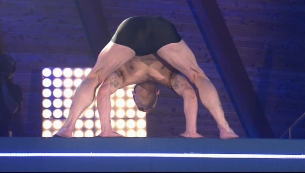 Gervasio Deferr no ha querido decepcionar a nadie. Desde la plataforma de los 10 metros ha realizado un 'equilibrio doble mortal atrás con medio tirabuzón'. Está claro que Gervasio no hace más que progresar casa semana con espectaculares saltos que dejan boquiabierta a la audiencia.