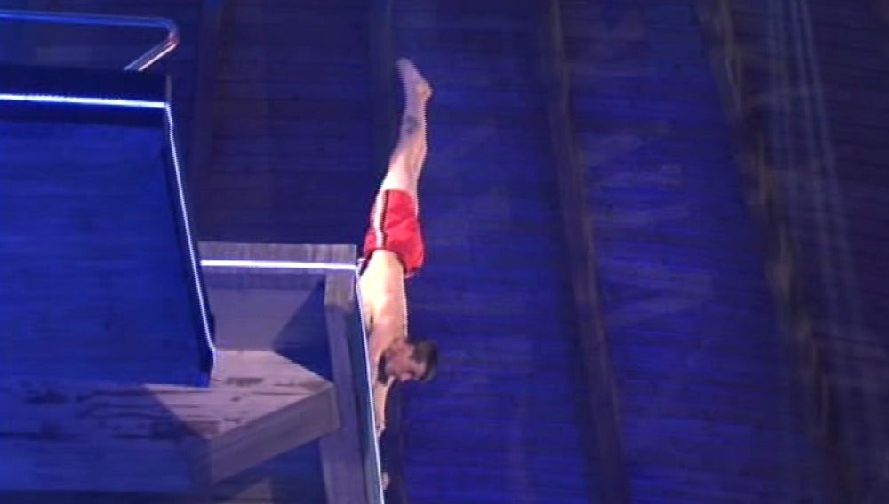 PROGRAMA 7 I SPLASH! FAMOSOS AL AGUA Juanjo Ballesta salta desde los 10 metros Juanjo Ballesta ha hecho un 'equilibrio base de pie' desde la plataforma de 10 metros de altura que le ha dejado mal sabor de boca. Juanjo ha intentado superarse con un salto arriesgado para su hombro tras unos entrenamientos intensos. Más sobre este tema: Splash Famosos al agua