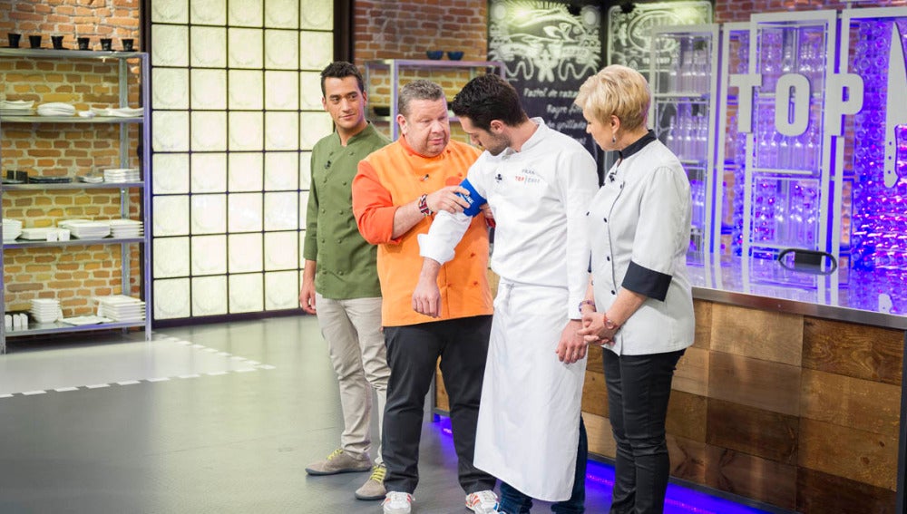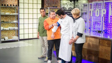 El brazalete ha despertado los celos de los cocineros. Víctor o Peña han sido los que más se han pronunciado al respecto, aunque David también ha dudado de que el plato de Néstor estuviera por encima del suyo y el de sus compañeros.