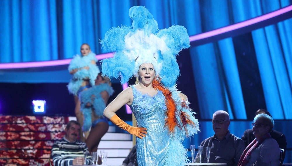 Una despampanante Terremoto de Alcorcón se ha subido al escenario con la fuerza de Gracita Morales para cantar ‘Yo soy la vedette’. A la cantante madrileña no le ha faltado ni el sombrero ni la bufanda de plumas para dejar a todos boquiabiertos. ¡Brillante!