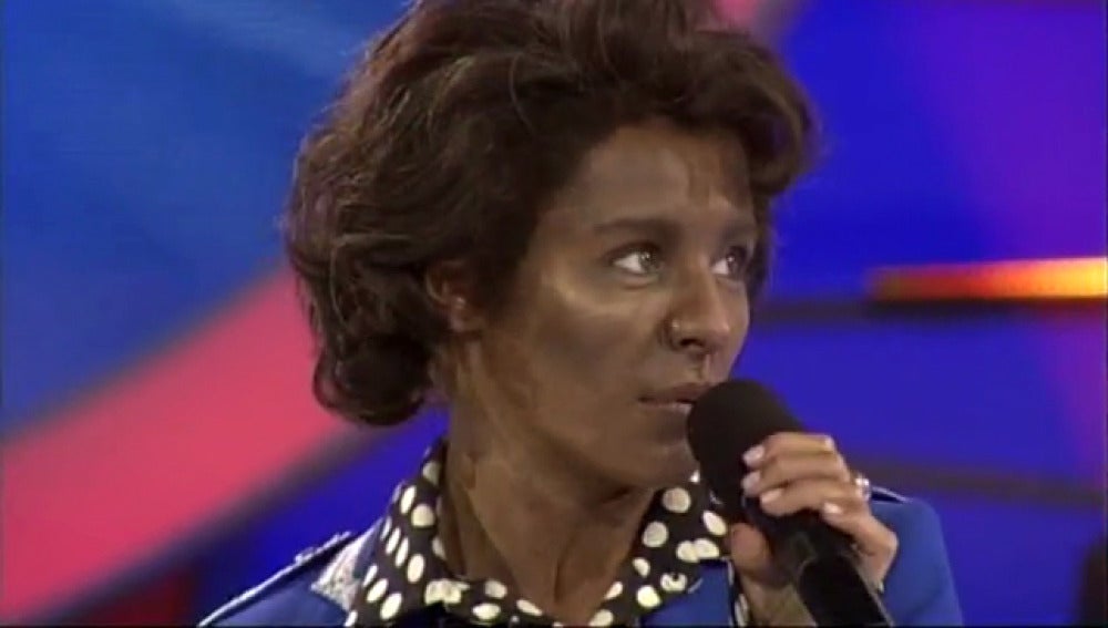 La cantante más dance de nuestro país, se ha caracterizado con una peluca morena, dentadura blanca y traje de chaqueta azul para imitar al cantante de Soul y Funk por excelencia, James Brown. Soraya Arnelas se ha sentido más que bien encima del escenario cantando I feel good.