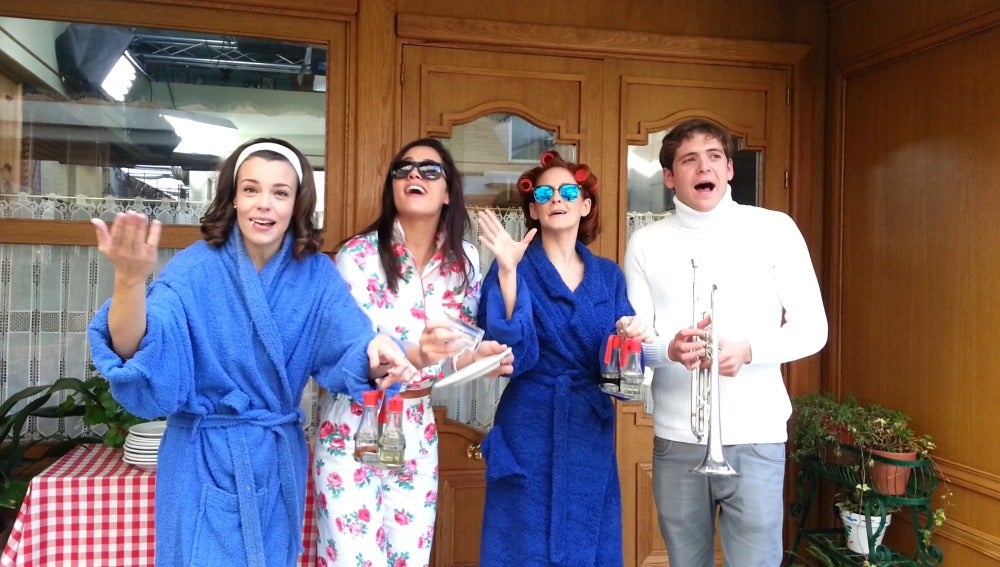 El espíritu navideño inunda el rodaje de 'Amar es para siempre'. Ana Polvorosa, Lucía Martín, Michelle Calvó y Junio Valverde quieren felicitar las fiestas a todos los espectadores de la serie y lo hacen de la manera más tradicional: cantando un villancico. Acompañados de los objetos más descabellados, los actores de 'Amar es para siempre' dan un toque divertido y original a la popular canción 'Campanas de Belén'. ¡No te lo pierdas!