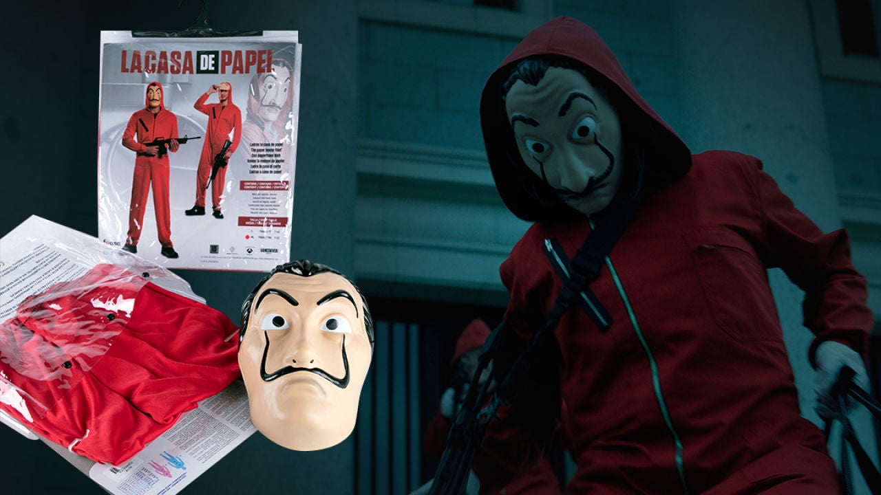 Además, ya puedes encontrar en las principales tiendas de disfraces, físicas y digitales, los auténticos basados en los atracadores de la serie 'La casa de papel'. Siéntete como los protagonistas de la serie del momento, compártelo con tus amigos y podréis dar vida la banda de atracadores más famosa del mundo.Disfruta de los productos de la serie y ponte en la piel de Berlín, Tokio, Denver, Río... Pásate por tu tienda más cercana, o búscalo online, localiza el producto identificado con los logos de la cadena y ya es tuyo.