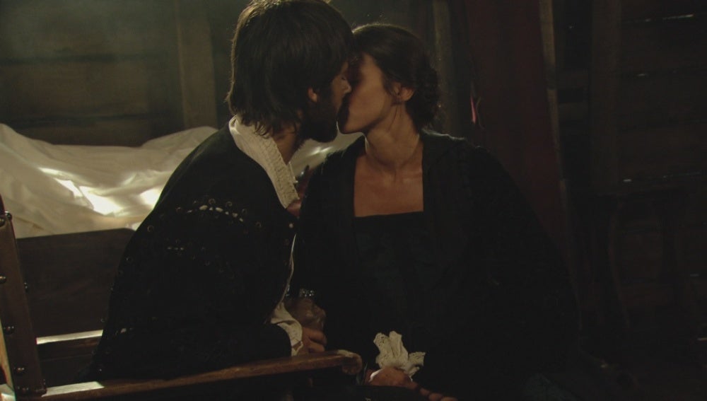 Tras el ataque de los piratas Salazar se queda impresionado con Mencía y no puede evitar besarla.