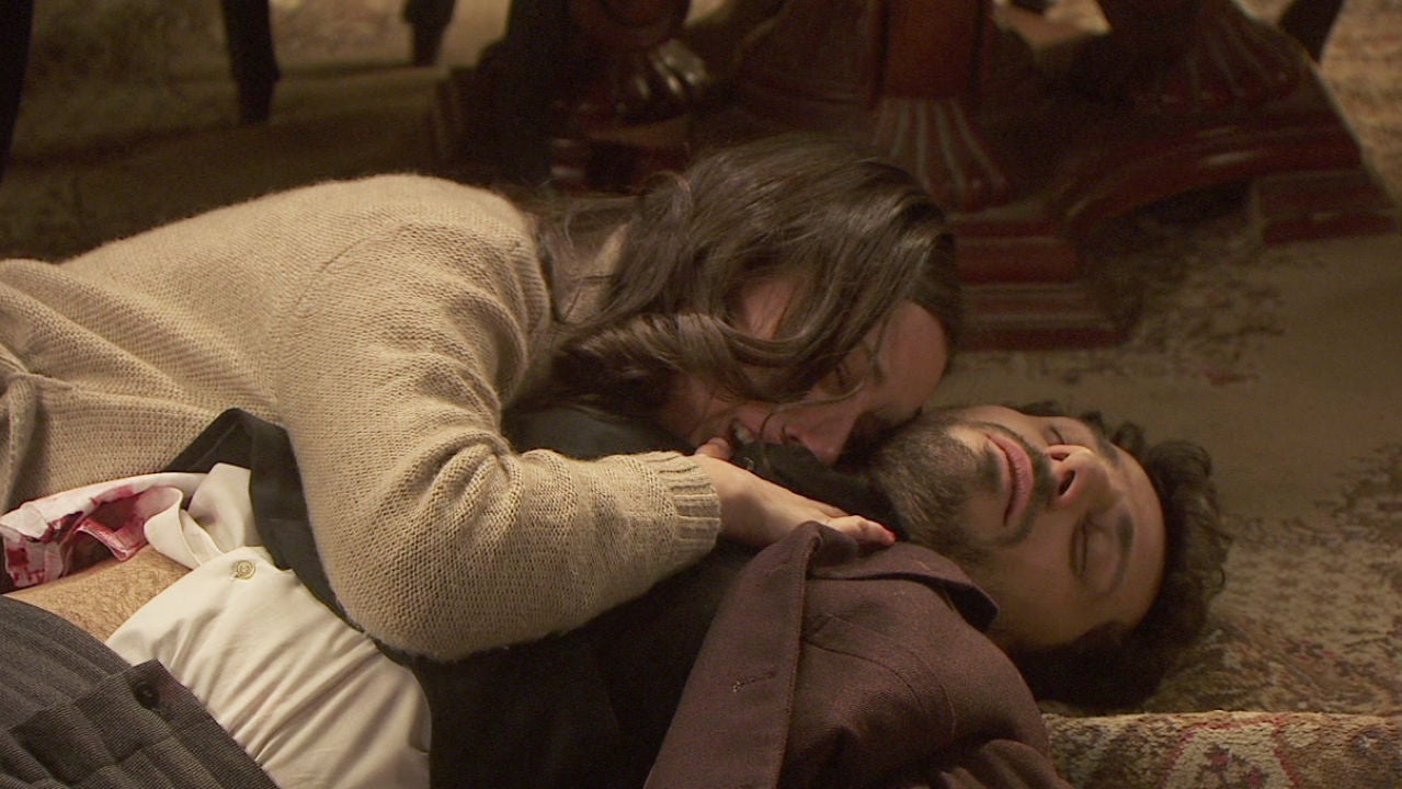 Conrado llega a tiempo de rescatar a Aurora, pero Alicia lo apuñala hiriéndole de muerte. Lucas intenta, sin éxito, reanimar a Conrado; que muere en brazos de Aurora, rota de dolor.
