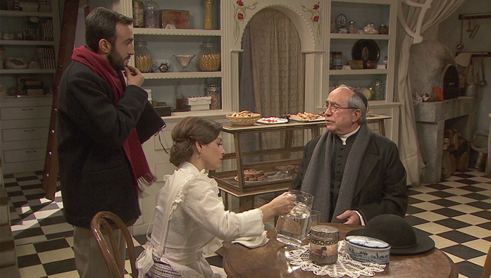 Don Anselmo se recupera en el dispensario e insiste en que sus dolencias son menores. Pero el cura llega a la confitería agotado y Candela lo convence que se mude con ella para cuidarlo.
