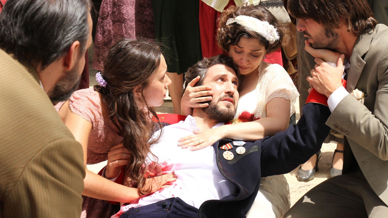 Conmoción. Ha sido Tristán quien ha recibido el disparo que expira en brazos de su mujer, mientras Aurora se resiste a darlo por muerto.