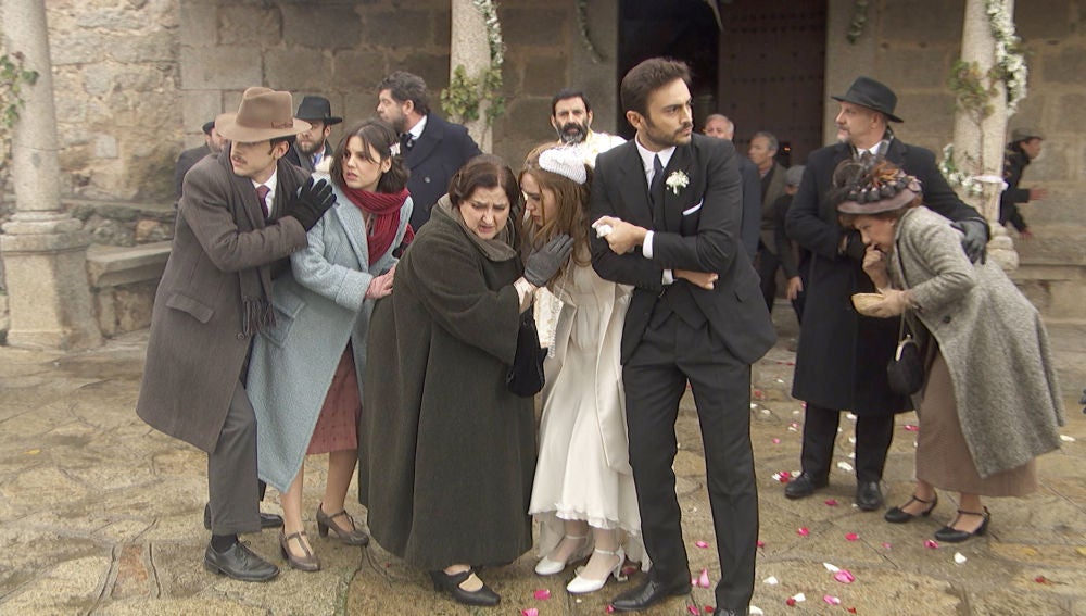 La pareja ya se ha convertido en marido y mujer pero, a su salida de la iglesia, unos fuertes disparos sorprendieron a todos los invitados. Con la advertencia de que podría ser Eustaquio Molero, todo el mundo tiene miedo de que su venganza haya llegado. Sin embargo, se trata de solo un susto por unos jóvenes del pueblo.
