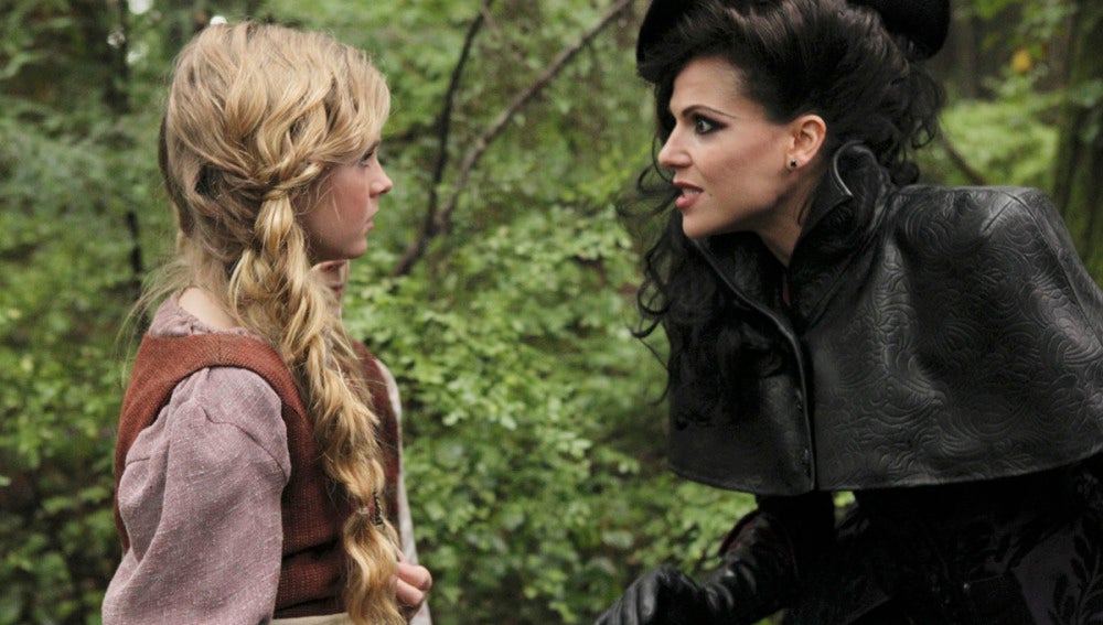 Mientras tanto, en el Mundo de los Cuentos de Hadas, la Reina Malvada coacciona a Hansel y a Gretel para robar algo importante a la Bruja Ciega.