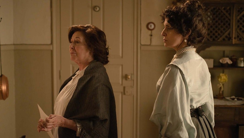 Ángela le hace firmar un papel en el que Doña Teresa se inculpa del asesinato de Celia Velledur que verá la luz si no consigue liberar a Andrés de su condena
