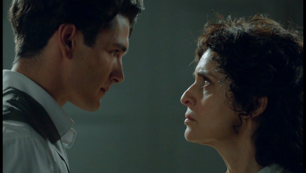 Julio le cuenta a Doña Teresa sus averiguaciones sobre Jesús CIsneros y le pide ayuda para liberar a Alicia. Teresa parece no dar crédito a lo que le cuenta el camarero