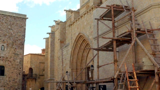 Piedra a piedra, la Basílica de Santa María del Mar se ha creado en Cáceres sobre la concatedral de la ciudad. Los actores, impresionados por la construcción de ocho metros de altura, ha conseguido meterse en el papel a la perfección. Con un equipo técnico especializado en series de época, se consigue que cada elemento sea idéntico al de la época medieval.