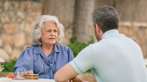 Así, Delia ha amenazado con llamar a las enfermeras o incluso a la policía si Andrés no le cuenta de inmediato toda la verdad. Él le ha revelado su verdadera identidad y le ha contado a Delia toda la historia sobre cómo su hijo llegó a Toledo y se instaló con los De la Reina.