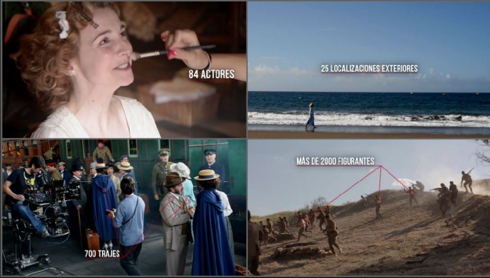 Te contamos el rodaje de 'Tiempos de Guerra' en números. El trabajo de todo el equipo ha dado resultado a una producción con cifras desorbitadas: 84 actores, 2.000 figurantes, 700 trajes, etc. Todos los ingredientes necesarios para recrear lo que sucedió en Melilla en 1921.